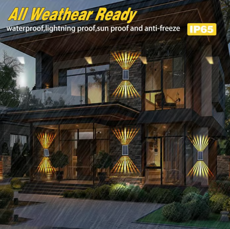 Solar Up and Down Lights Outdoor: These solar outdoor wall lights feature an up and down glow design, The product has two lamp beads, one at the top and one at the bottom,forming a beam of up to 19.7 feet. This provides excellent lighting effects, enhancing both the illumination and decoration of your house.