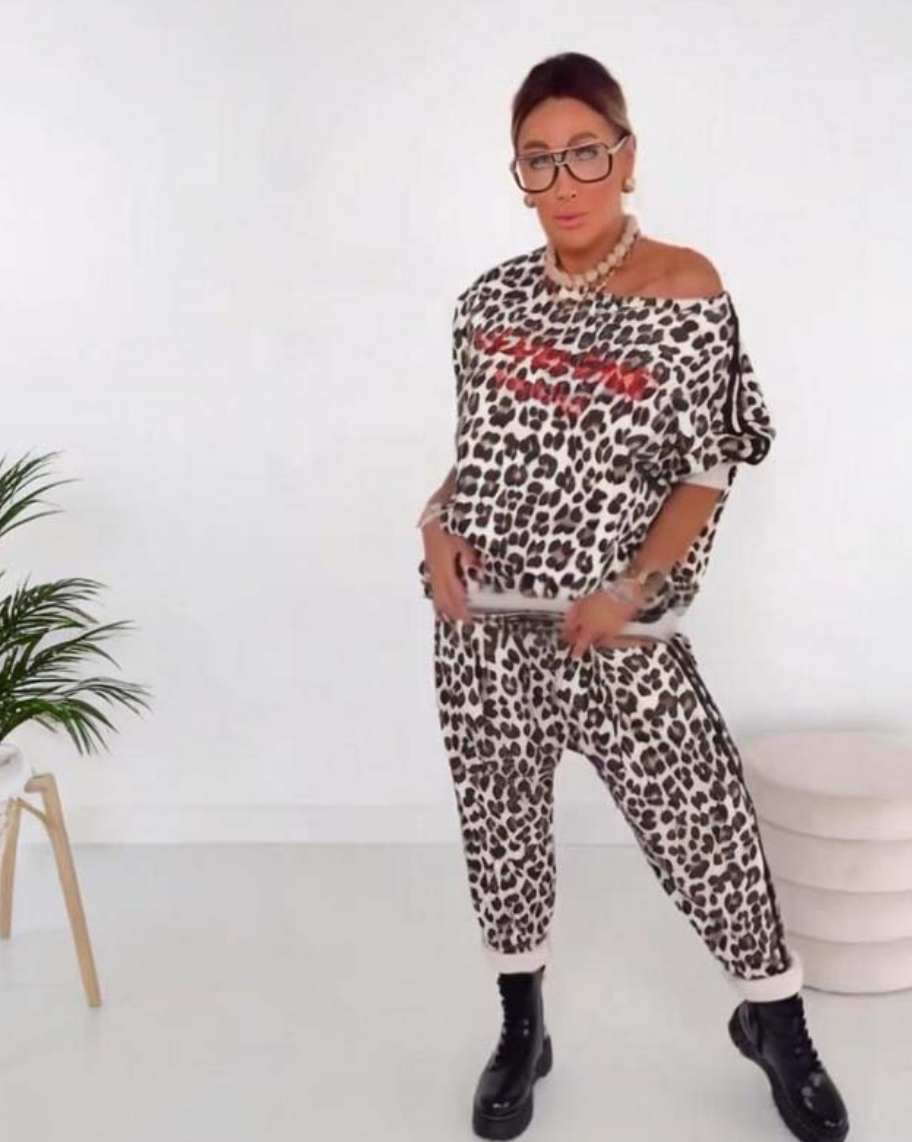 Package Includes: 1 * Women's Leopard Print Top and Pants Set