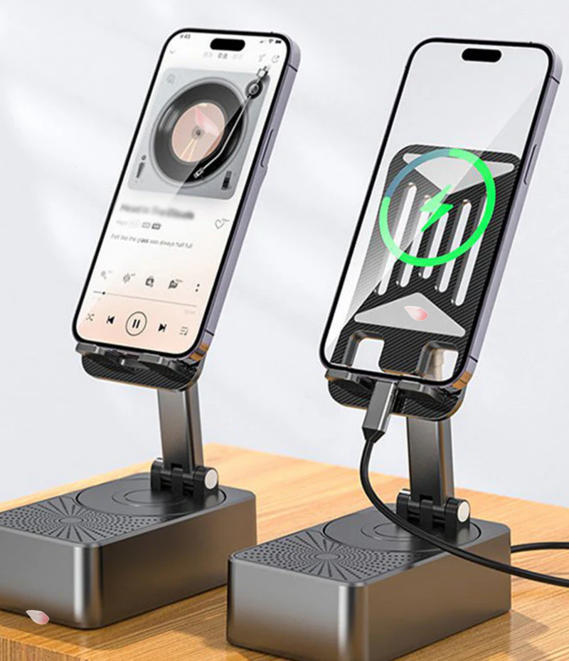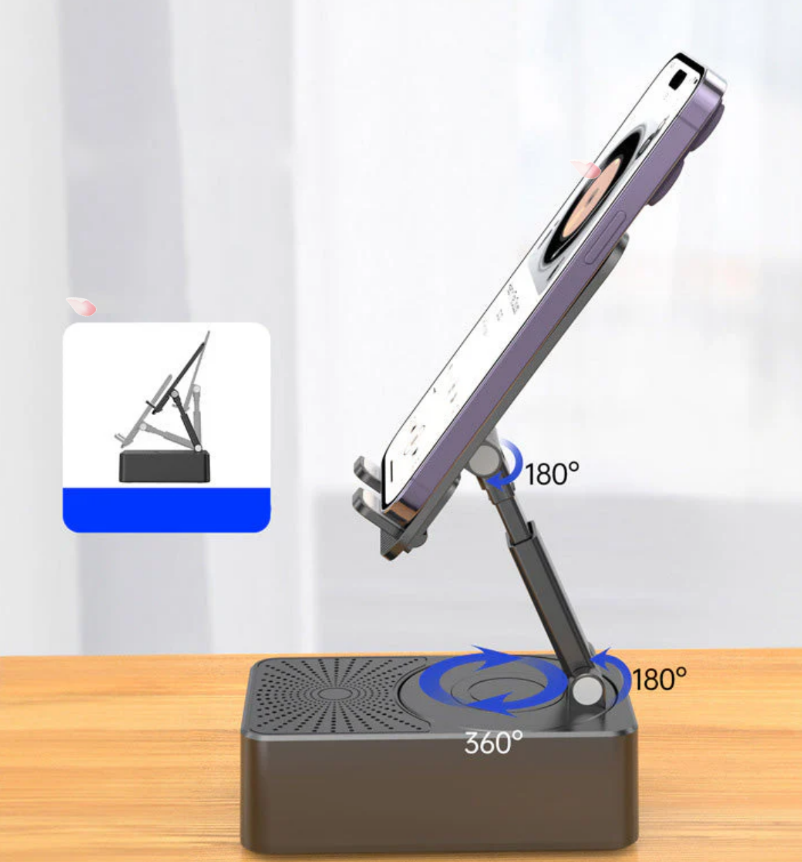 Elevate your daily routine with the 3-in-1 Wireless Bluetooth Speaker Charging Station Cell Phone Stand. This multifunctional powerhouse combines three essential features into one stylish and space-saving device. Enjoy immersive music, hands-free calling, and convenient charging, all in one sleek package. Upgrade your workspace, bedside table, or kitchen counter with this versatile gadget.