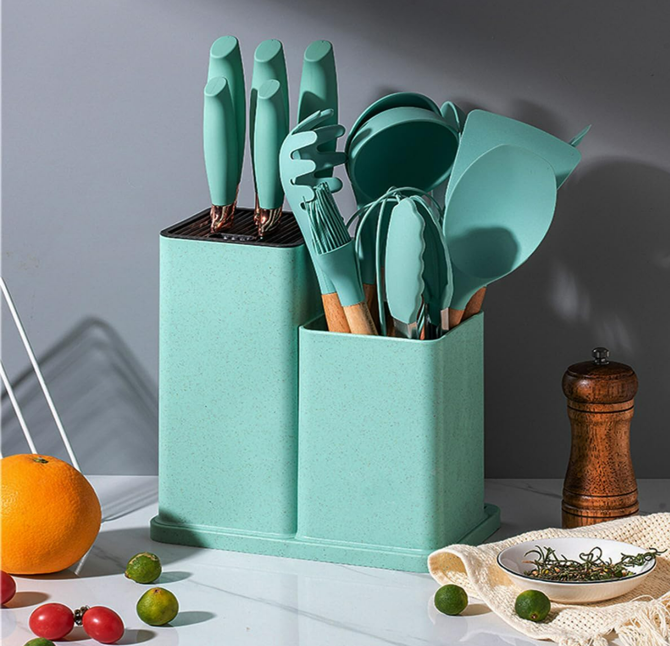 • 19-in-1 kitchen knives and utensils set, silicone kitchen utensils set and kitchen accessories to meet your maximum demand be your kitchen assistant.