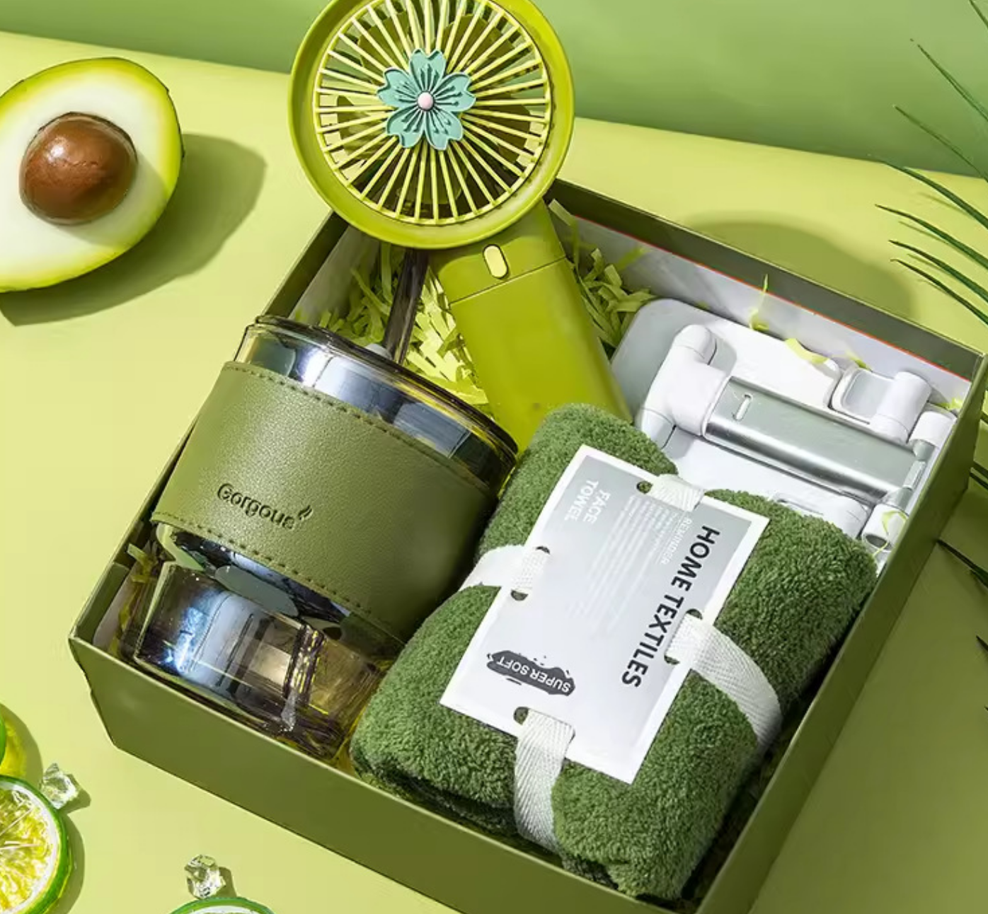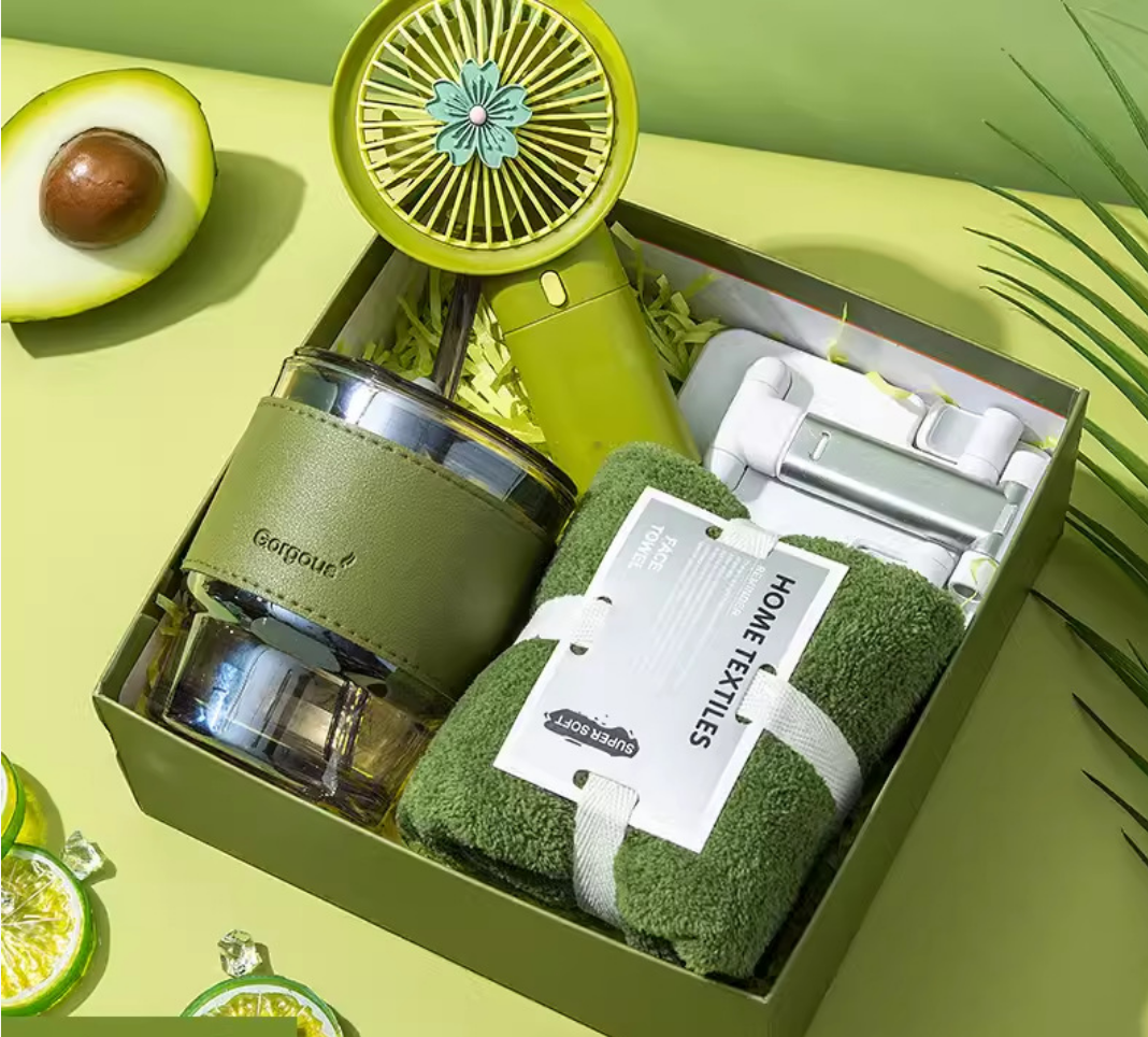 This is a 3+1 suit, glass+towel+fan+mobile phone holder.