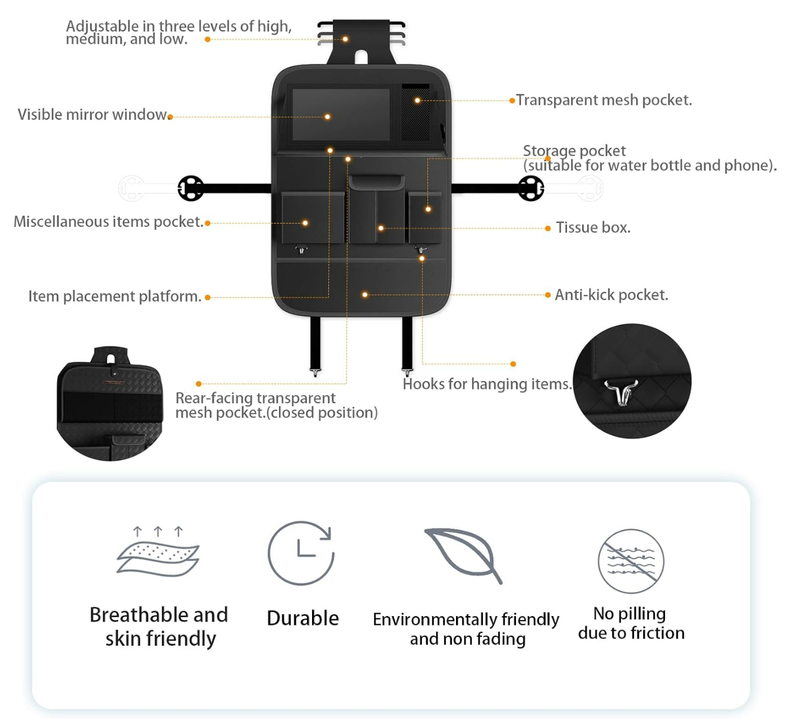[After-sale Worry-free]-The AIUWO car seat back organizer is suitable for any size of car.If you have any after-sales problems, We provide a 30-day return without reason,we will reply within 24 hours to protect your rights and interests.
