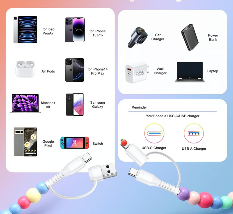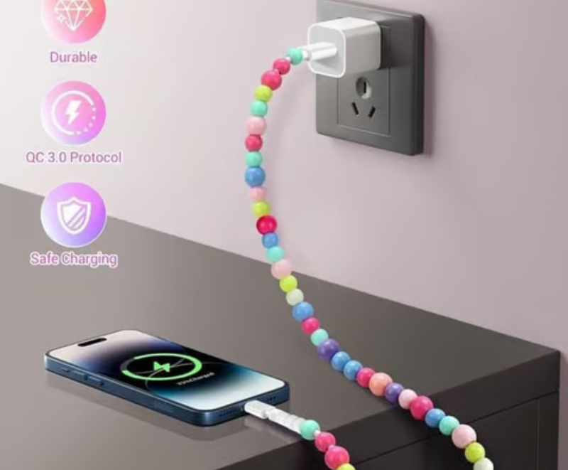Colorful Beaded Designs: Playful USB C cable features charming colorful beads with stars and hearts, creating a stylish accessory while protecting the cable from tangles. Very suitable for women girls and ideal for gifts