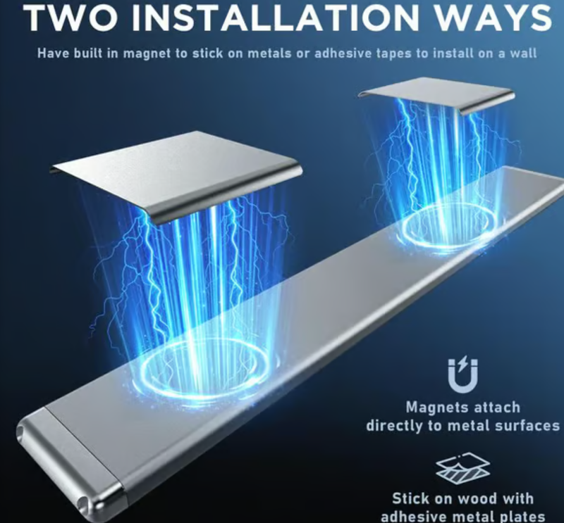 Easy Installation: With built-in strong magnets, these motion light indoor are easy to install, no need for an electrician. It can be adsorbed directly on ironwork surfaces. Or use the included adhesive metal plates to stick on anywhere you want. That also means it’s easy to take off and put back on when it needs a charge.