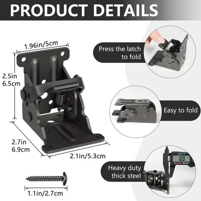 These brackets automatically lock in place when fully extended. Fold legs effortlessly by releasing the lock. Ideal for DIY projects requiring space-saving foldability.