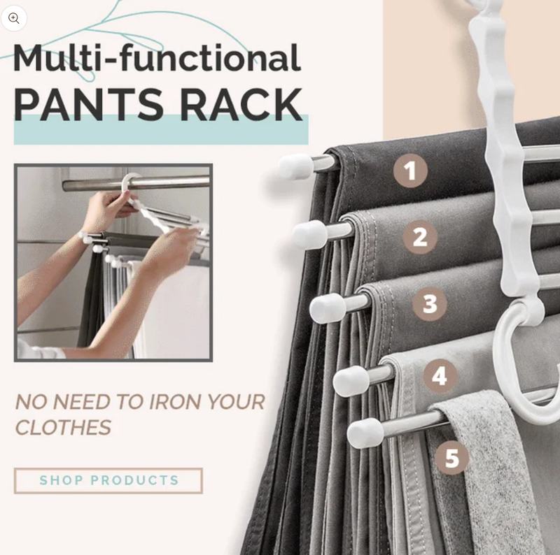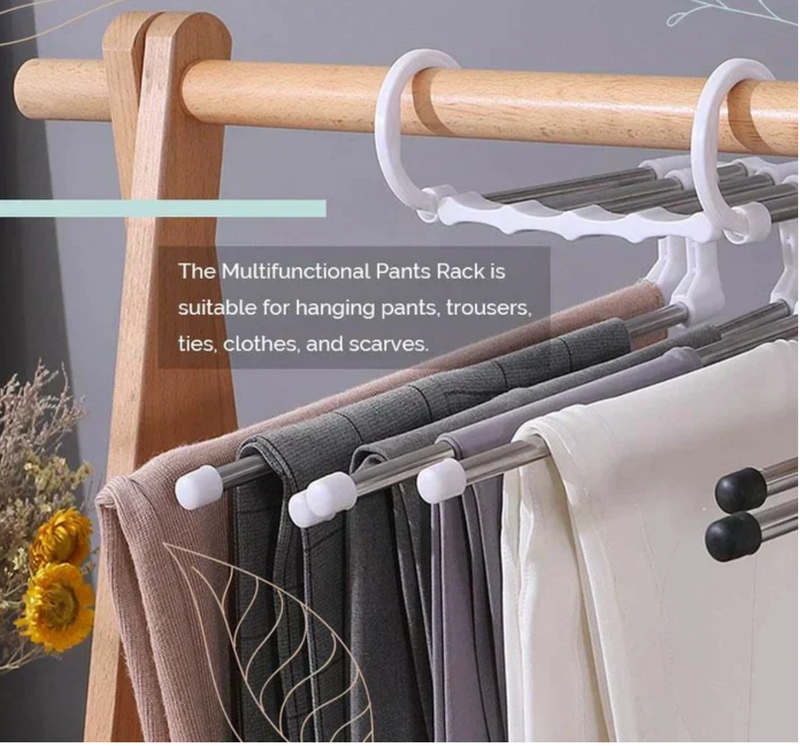 • The Multifunctional Pants Rack is suitable for hanging pants, trousers, ties, clothes, and scarves.