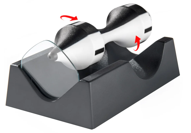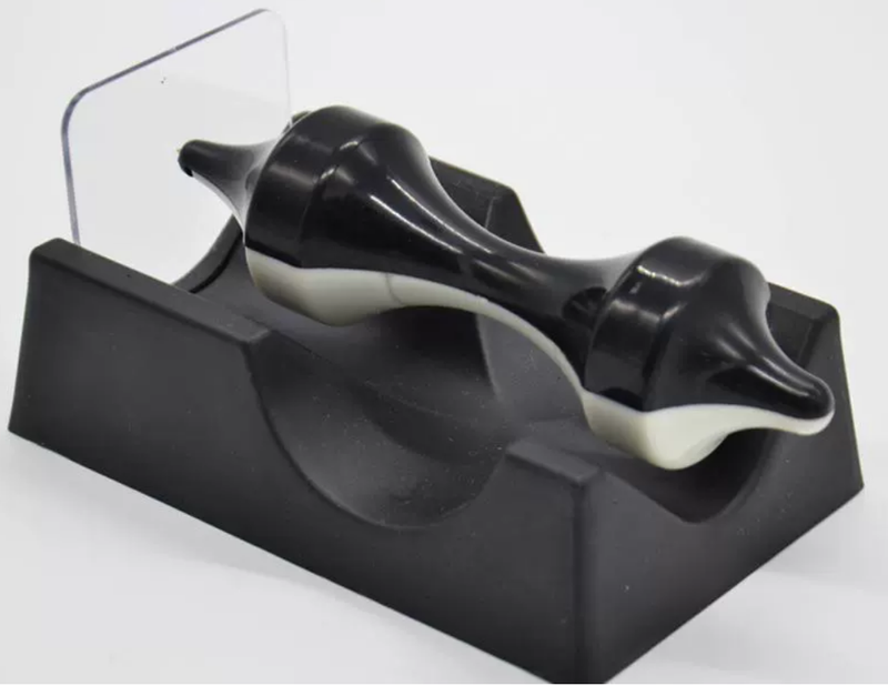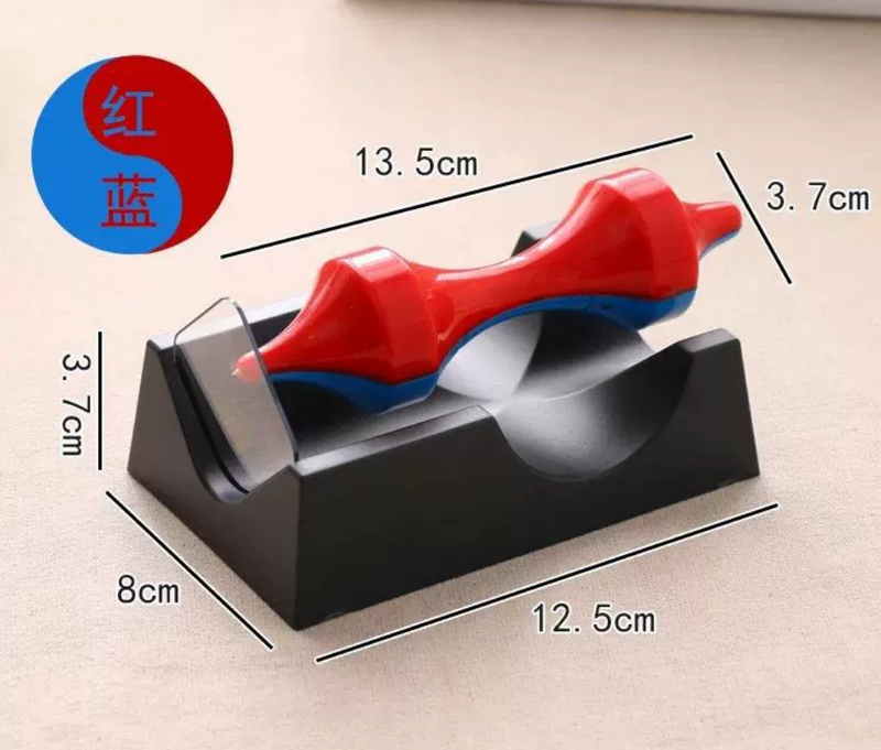 Put a new spin on your executive office curios. The Levitating Magnetic Top combines a scientific demonstration of magnetism with a mesmerizing tactile display.This sideways top is the ultimate gravity-defying magnetic field spindle. Magnets inside the two-tone axle hold it in suspension above the base while an upright glass plate gives it some stability.With minimal friction and just the right balance, you can make the top spin for over a minute!