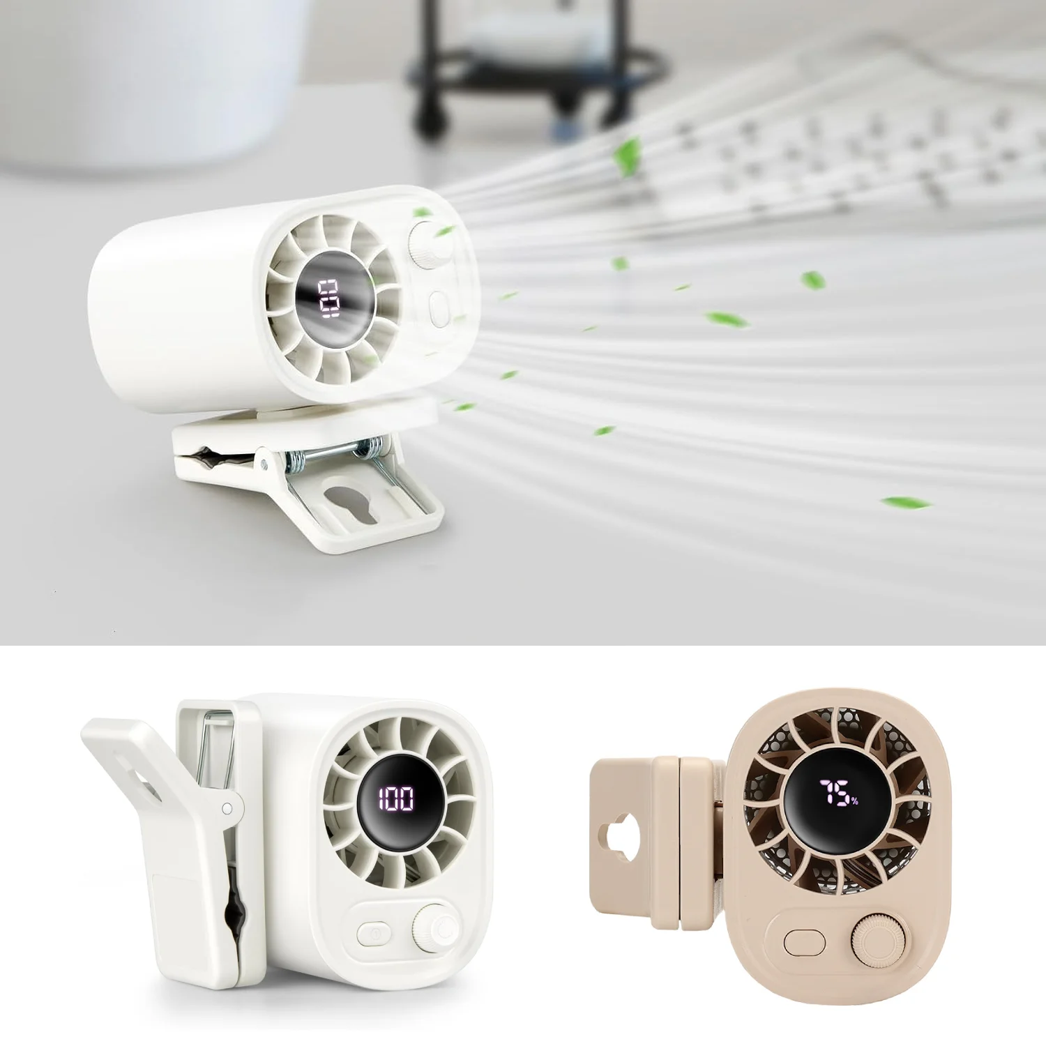 Clip it anywhere—umbrella handle, desk, stroller, bag, laptop, etc. The fan head rotates 360°, letting you direct airflow exactly where you need it.