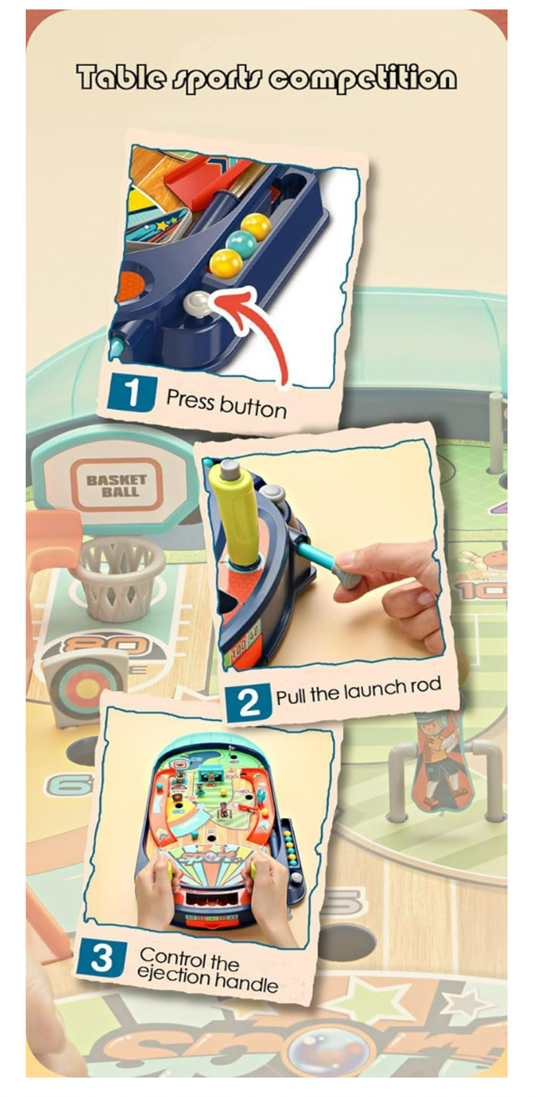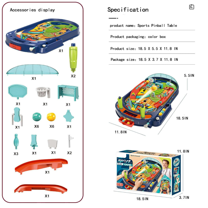 The products include: Pinball tabletop games with a total of 30 pieces, including a base and plastic tabletop.