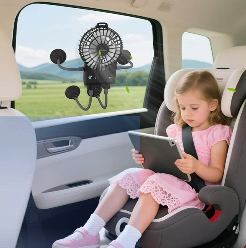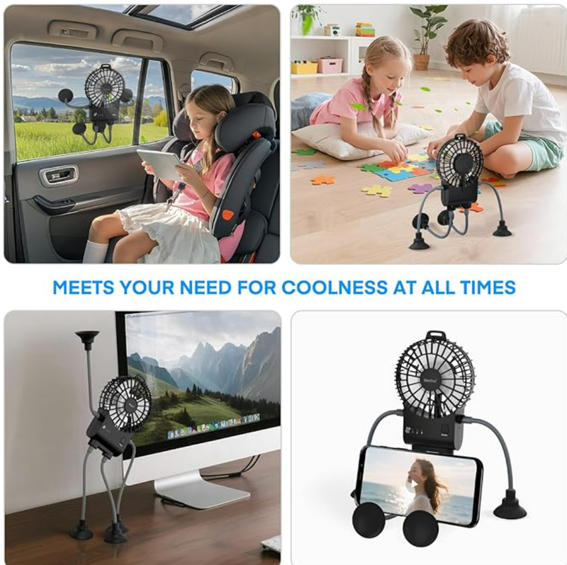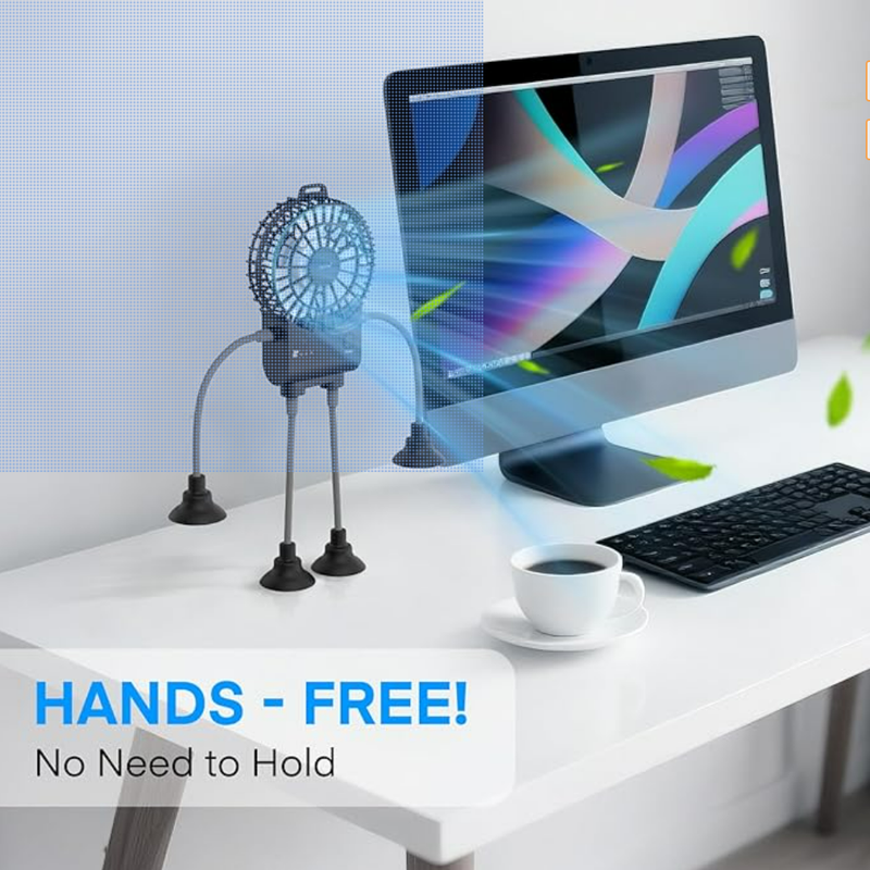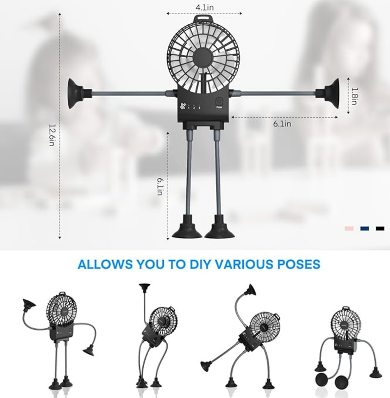 Hands - Free Convenience: Strong suction cups on the "feet" and "hands", you can easily attach it to smooth surfaces like desks, car window, or tabletops.This hands - free design allows you to enjoy the coolness without the need to hold the fan, making it perfect for various activities such as working, studying, or traveling.