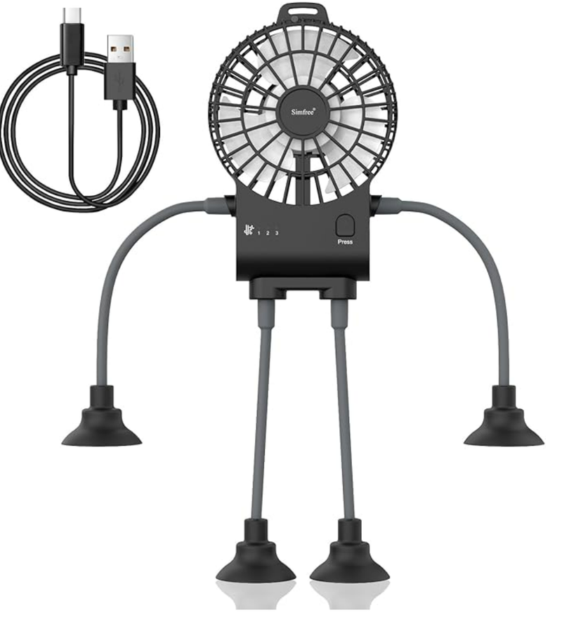 Simfree Portable Fan,Robot Desk Fan with Suckers-Rechargeable Portable Table Fan,3 Speeds Hands Free Fan for Home, Office,Game Room,Car and Outdoor Use-Black