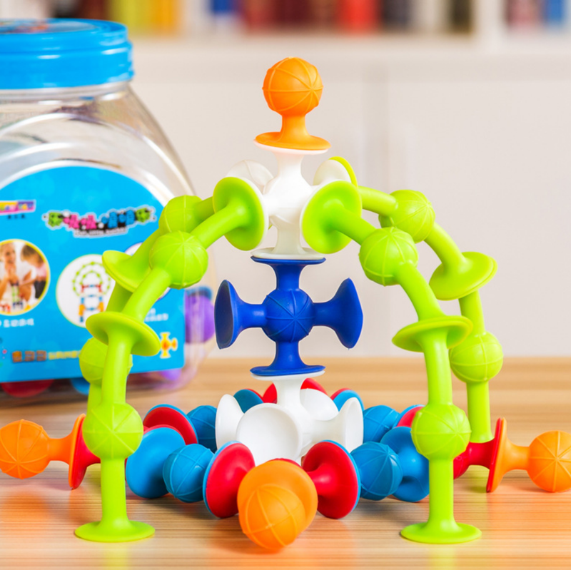 With Squigz suction cups, you can build down from above as easily as up from below.