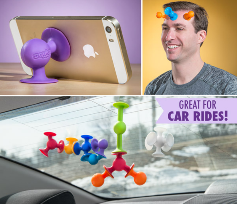 When you’re playing with Squigz, you can’t make a mistake. You can’t do it wrong, so start sticking Squigz to themselves, surfaces, electronic devices, people (yes!) and cars.