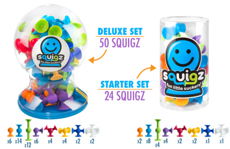 Each set of Squigz comes with eight awesome different shapes. The starter set will get you hooked while the deluxe set enables you to build big. The only way you can go wrong is not getting any.