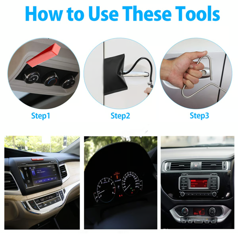 ✅ PREMIUM & TESTED - Forget about using cheap and flimsy tools. You'll be left with broken tools and still no way to get into your car. All the components of our car kit were tested numerous times to ensure quality, safety and efficiency.