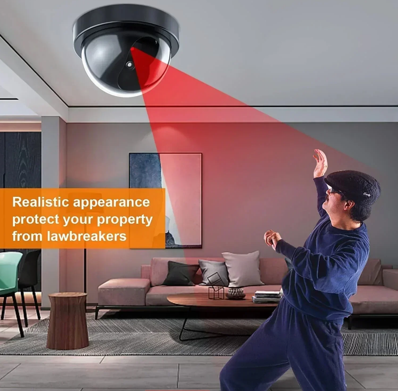 PROTECTS YOUR SAFETY: With a similar appearance to real cameras, people will think it's a real camera, even in the close distance during the day; The red LED light flashing 7/24 after the battery is installed. It's very eye-catching at night, making it more like real cameras.