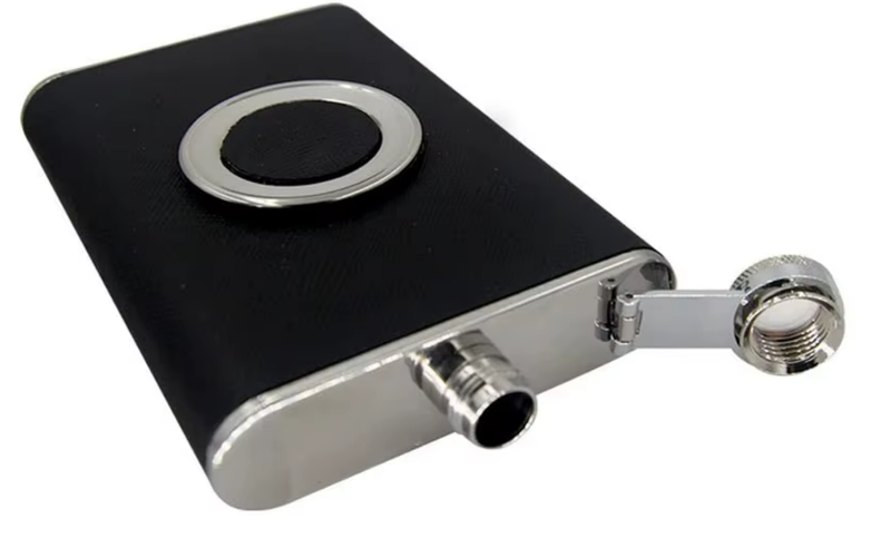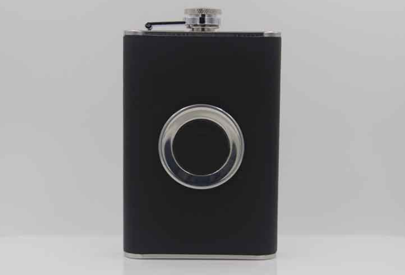 Black bonded leather wrapping (on flask)