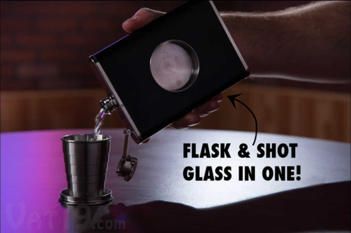 With the Shot Flask, we've combined a hidden telescoping shot glass within the body of a flask. Amazing!